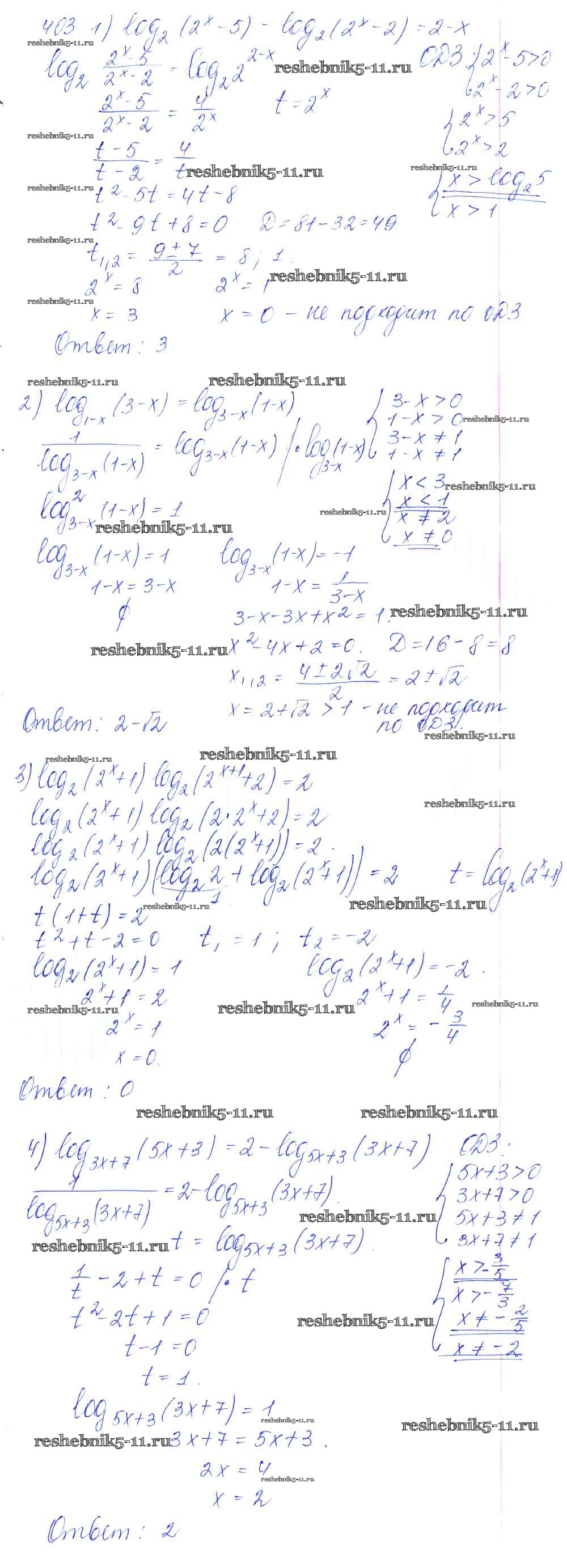 Готовая домашняя работа с ответами по Алгебре за 10, 11 класс Алимов, Ткачева, Колягин, Федорова, Шабунин Учебник Базовый и углубленный уровень Просвещение 2015 ФГОС - Упражнения 403