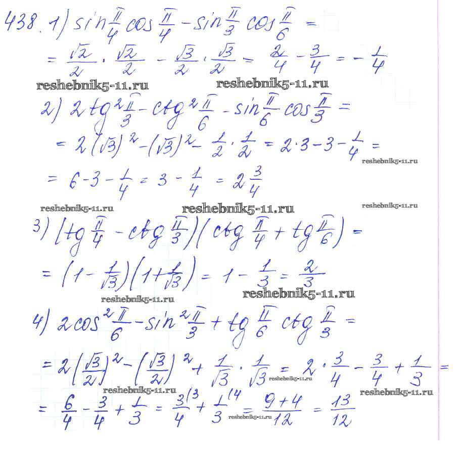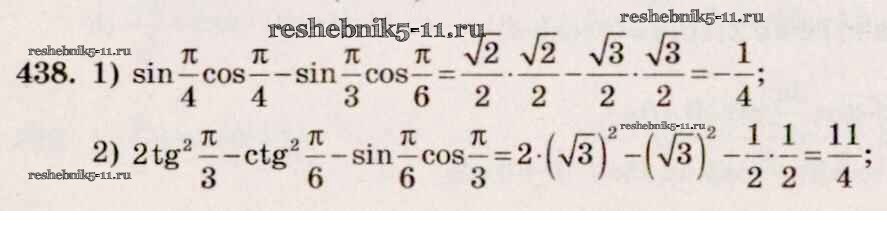 Готовая домашняя работа с ответами по Алгебре за 10, 11 класс Алимов, Ткачева, Колягин, Федорова, Шабунин Учебник Базовый и углубленный уровень Просвещение 2015 ФГОС - Упражнения 438