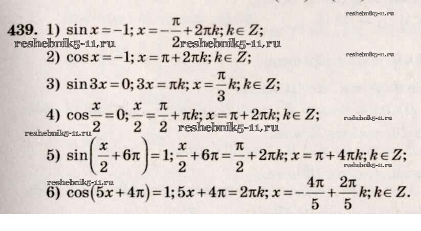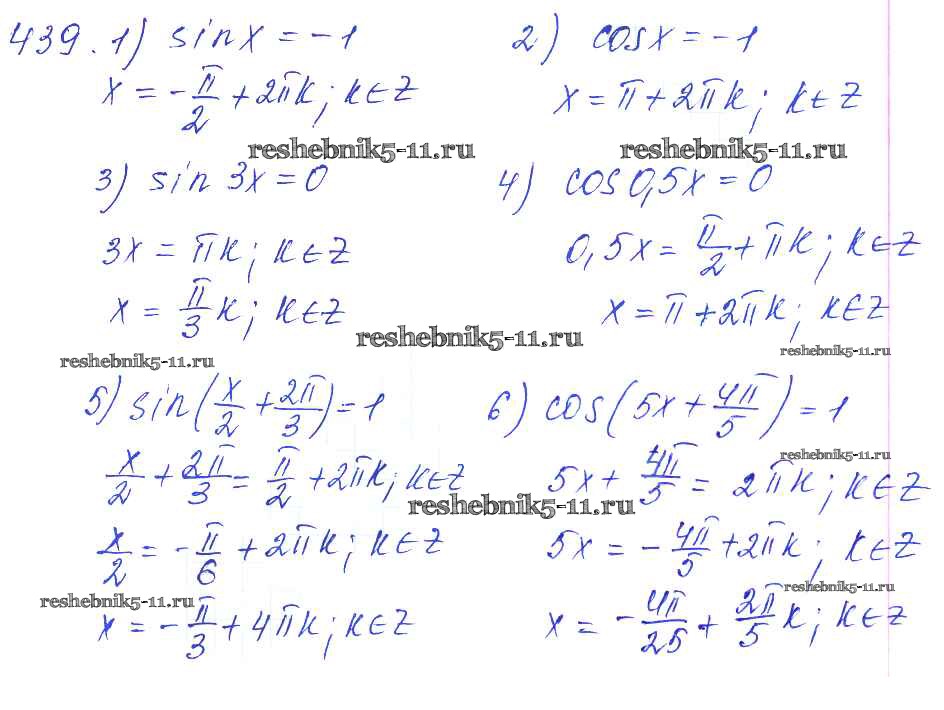 Готовая домашняя работа с ответами по Алгебре за 10, 11 класс Алимов, Ткачева, Колягин, Федорова, Шабунин Учебник Базовый и углубленный уровень Просвещение 2015 ФГОС - Упражнения 439