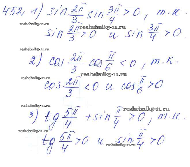 Готовая домашняя работа с ответами по Алгебре за 10, 11 класс Алимов, Ткачева, Колягин, Федорова, Шабунин Учебник Базовый и углубленный уровень Просвещение 2015 ФГОС - Упражнения 452
