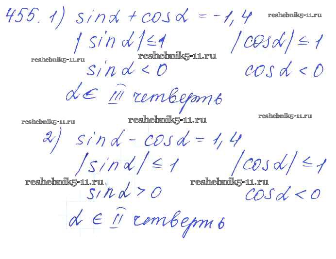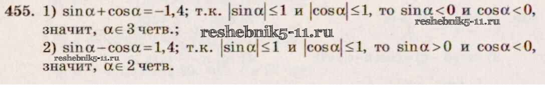 Готовая домашняя работа с ответами по Алгебре за 10, 11 класс Алимов, Ткачева, Колягин, Федорова, Шабунин Учебник Базовый и углубленный уровень Просвещение 2015 ФГОС - Упражнения 455