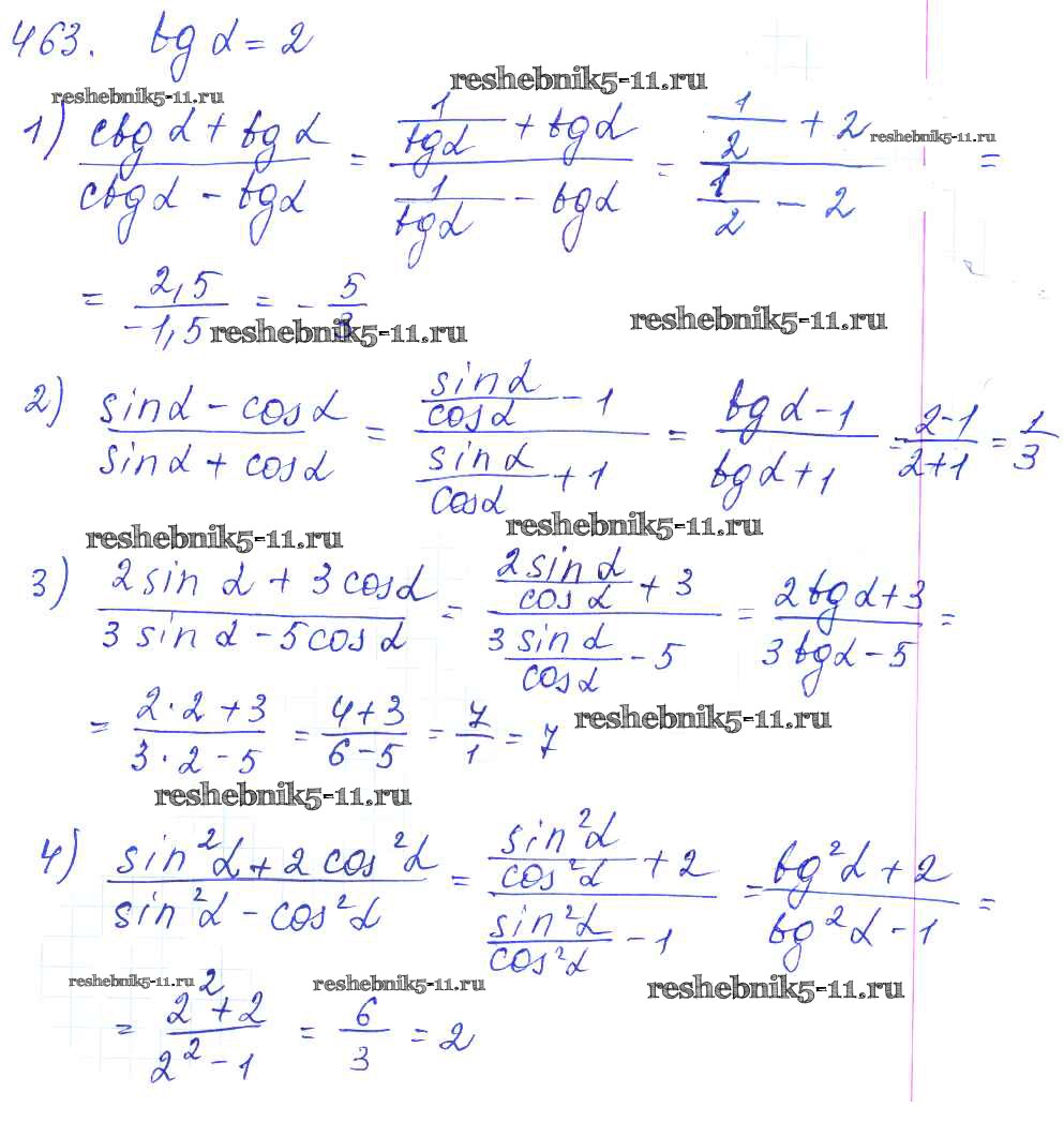 Готовая домашняя работа с ответами по Алгебре за 10, 11 класс Алимов, Ткачева, Колягин, Федорова, Шабунин Учебник Базовый и углубленный уровень Просвещение 2015 ФГОС - Упражнения 463