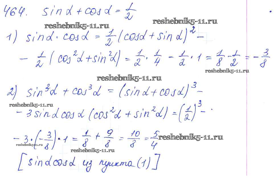 Готовая домашняя работа с ответами по Алгебре за 10, 11 класс Алимов, Ткачева, Колягин, Федорова, Шабунин Учебник Базовый и углубленный уровень Просвещение 2015 ФГОС - Упражнения 464