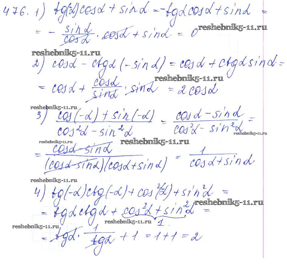 Готовая домашняя работа с ответами по Алгебре за 10, 11 класс Алимов, Ткачева, Колягин, Федорова, Шабунин Учебник Базовый и углубленный уровень Просвещение 2015 ФГОС - Упражнения 476