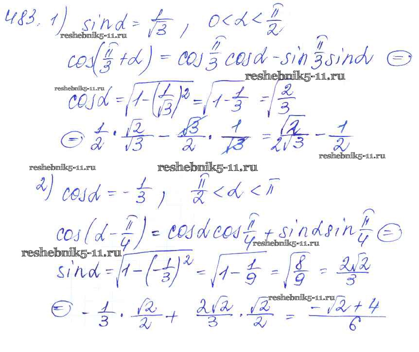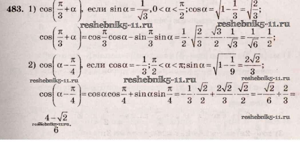 Готовая домашняя работа с ответами по Алгебре за 10, 11 класс Алимов, Ткачева, Колягин, Федорова, Шабунин Учебник Базовый и углубленный уровень Просвещение 2015 ФГОС - Упражнения 483