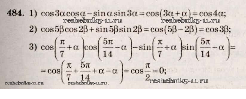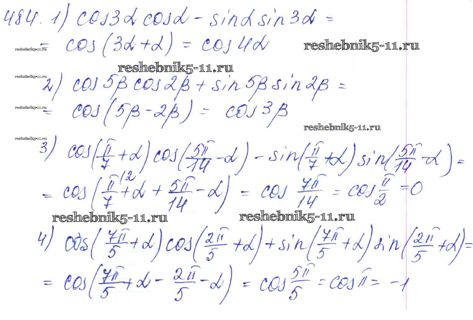 Готовая домашняя работа с ответами по Алгебре за 10, 11 класс Алимов, Ткачева, Колягин, Федорова, Шабунин Учебник Базовый и углубленный уровень Просвещение 2015 ФГОС - Упражнения 484