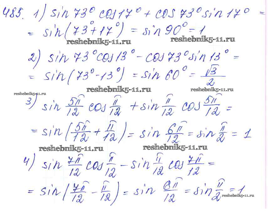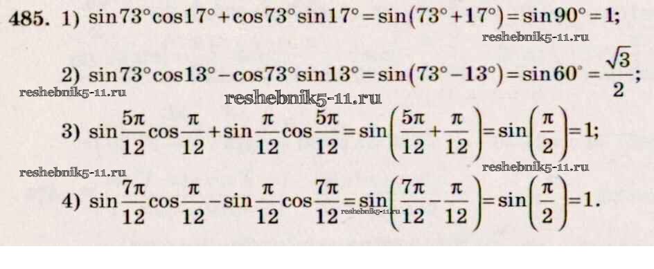 Готовая домашняя работа с ответами по Алгебре за 10, 11 класс Алимов, Ткачева, Колягин, Федорова, Шабунин Учебник Базовый и углубленный уровень Просвещение 2015 ФГОС - Упражнения 485