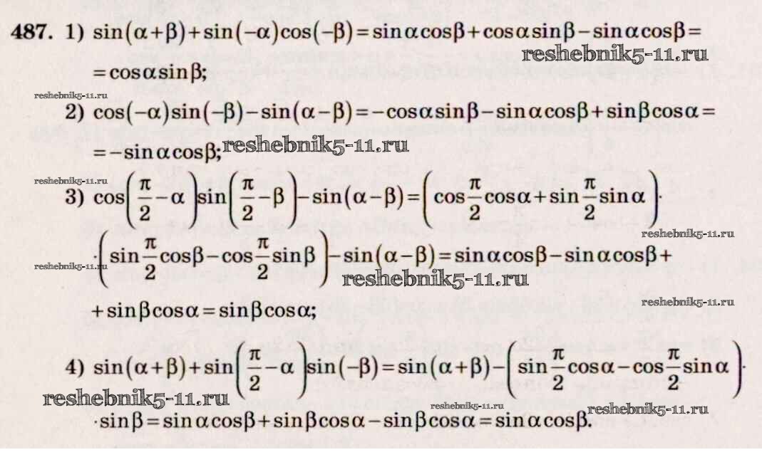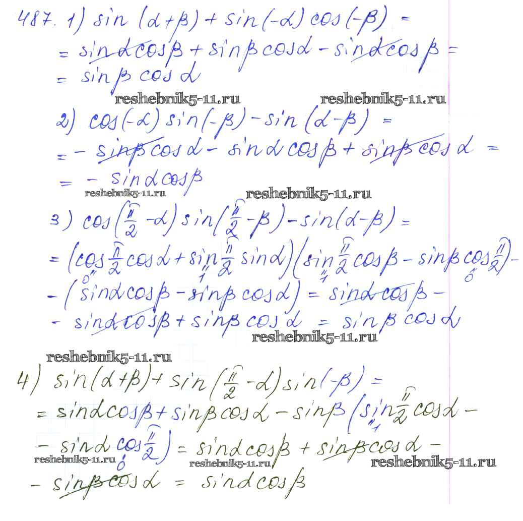 Готовая домашняя работа с ответами по Алгебре за 10, 11 класс Алимов, Ткачева, Колягин, Федорова, Шабунин Учебник Базовый и углубленный уровень Просвещение 2015 ФГОС - Упражнения 487