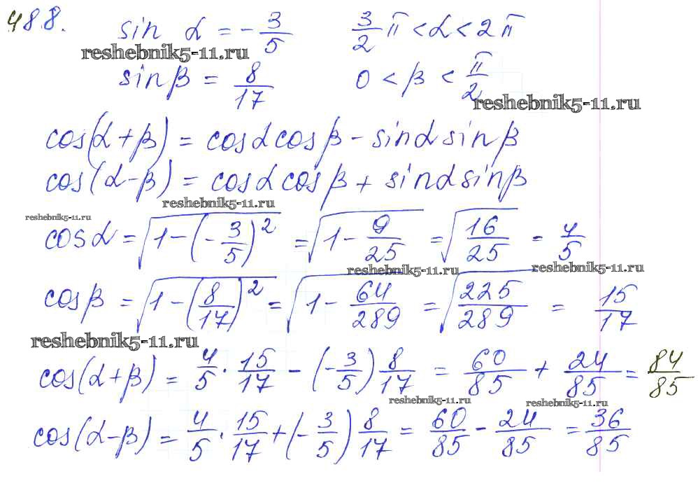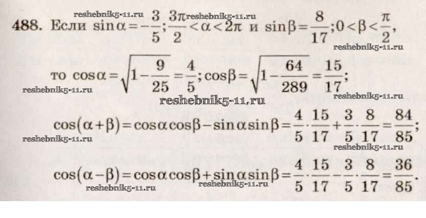 Готовая домашняя работа с ответами по Алгебре за 10, 11 класс Алимов, Ткачева, Колягин, Федорова, Шабунин Учебник Базовый и углубленный уровень Просвещение 2015 ФГОС - Упражнения 488