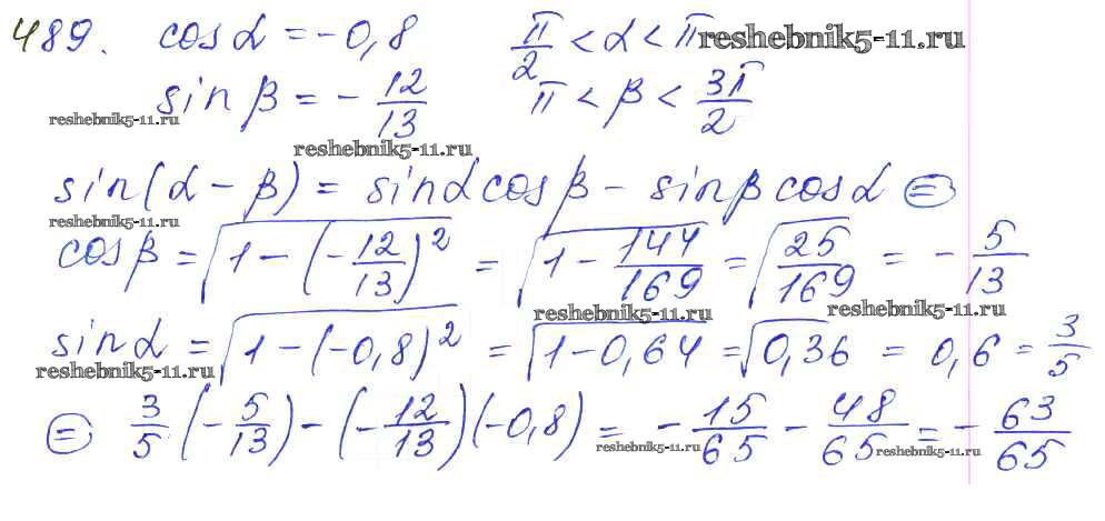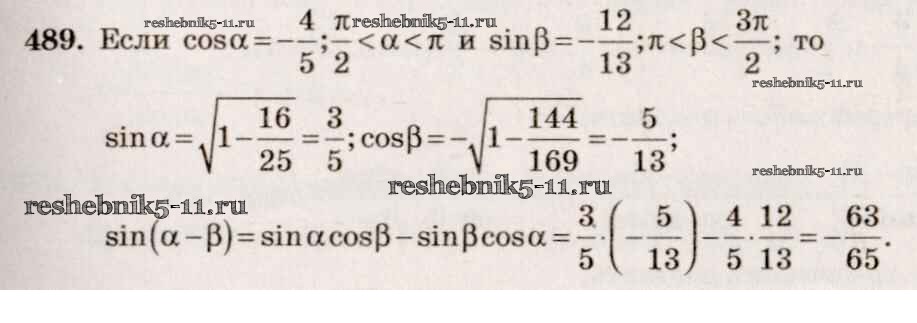 Готовая домашняя работа с ответами по Алгебре за 10, 11 класс Алимов, Ткачева, Колягин, Федорова, Шабунин Учебник Базовый и углубленный уровень Просвещение 2015 ФГОС - Упражнения 489