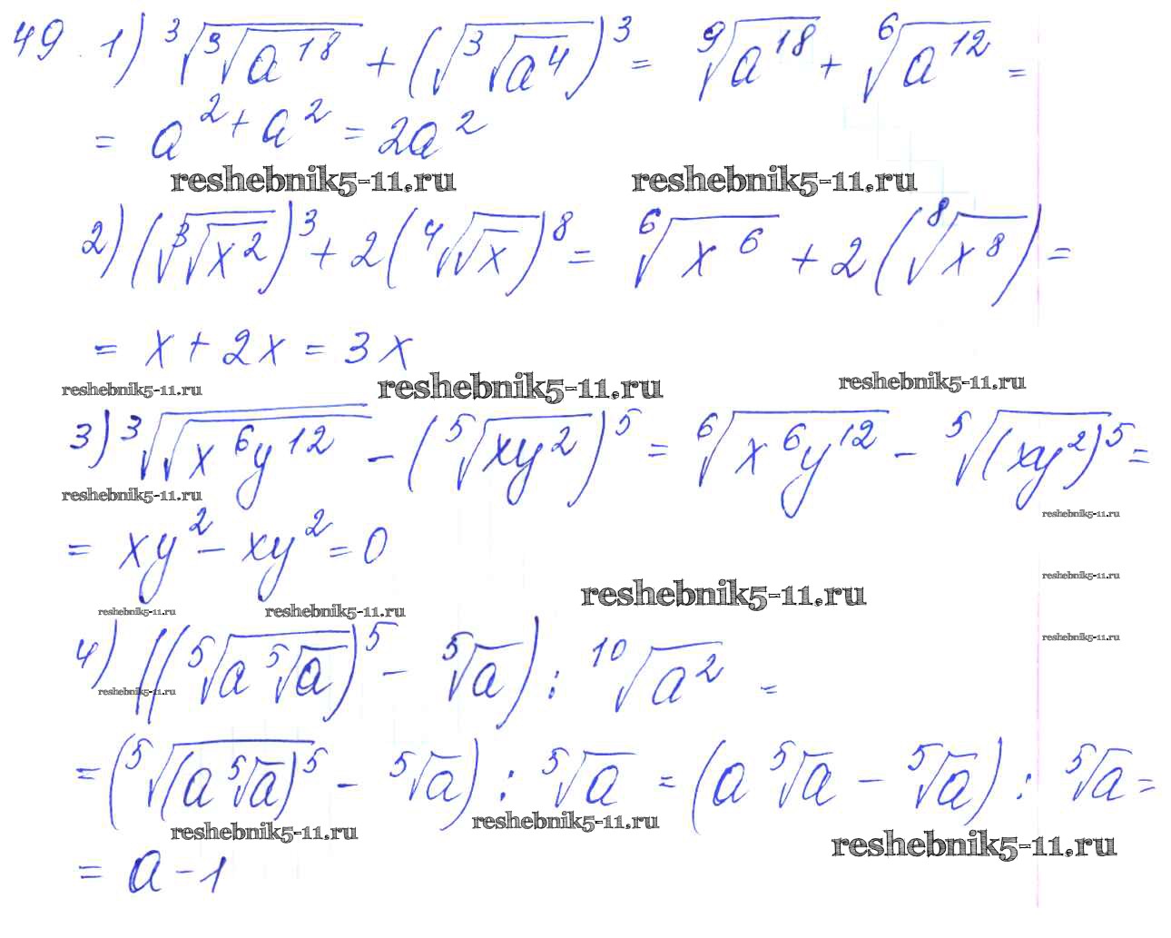 Готовая домашняя работа с ответами по Алгебре за 10, 11 класс Алимов, Ткачева, Колягин, Федорова, Шабунин Учебник Базовый и углубленный уровень Просвещение 2015 ФГОС - Упражнения 49