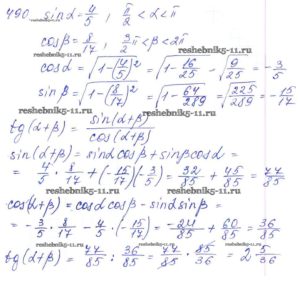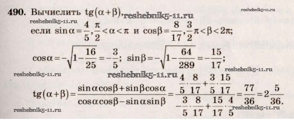 Готовая домашняя работа с ответами по Алгебре за 10, 11 класс Алимов, Ткачева, Колягин, Федорова, Шабунин Учебник Базовый и углубленный уровень Просвещение 2015 ФГОС - Упражнения 490