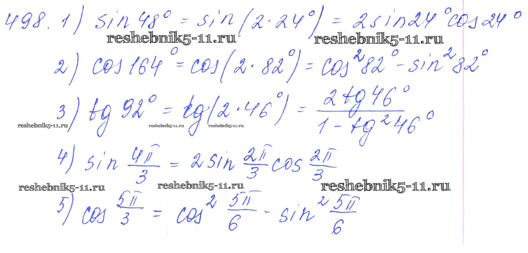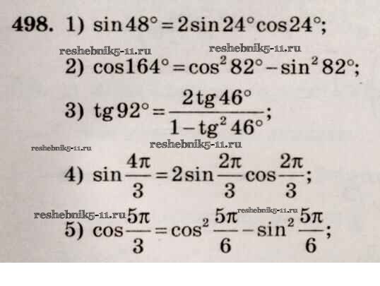 Готовая домашняя работа с ответами по Алгебре за 10, 11 класс Алимов, Ткачева, Колягин, Федорова, Шабунин Учебник Базовый и углубленный уровень Просвещение 2015 ФГОС - Упражнения 498