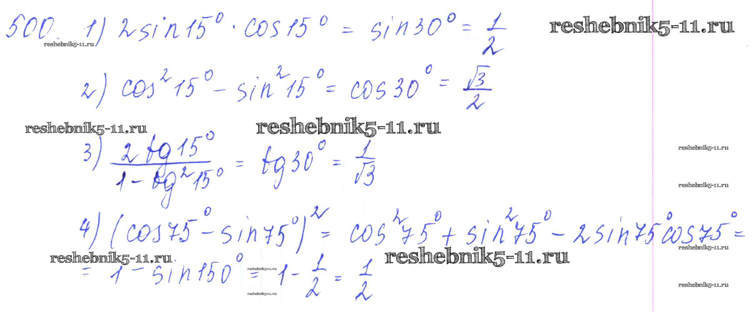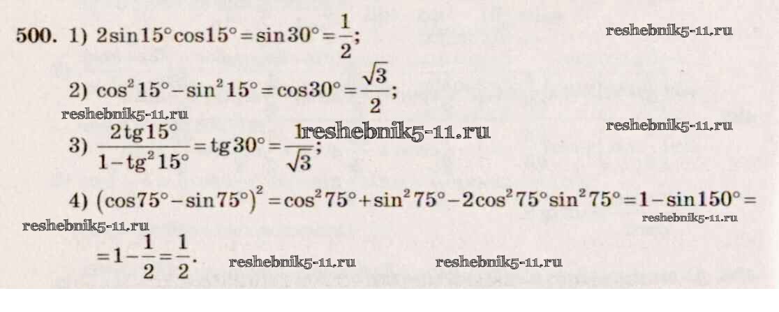 Алгебра за 10-11 класс Алимов Учебник Базовый и углубленный уровень Просвещение упражнение № 500