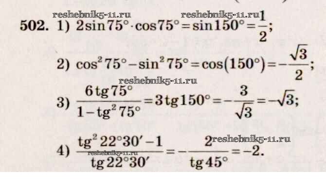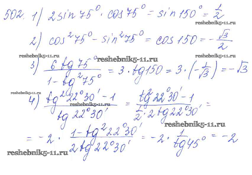 Готовая домашняя работа с ответами по Алгебре за 10, 11 класс Алимов, Ткачева, Колягин, Федорова, Шабунин Учебник Базовый и углубленный уровень Просвещение 2015 ФГОС - Упражнения 502