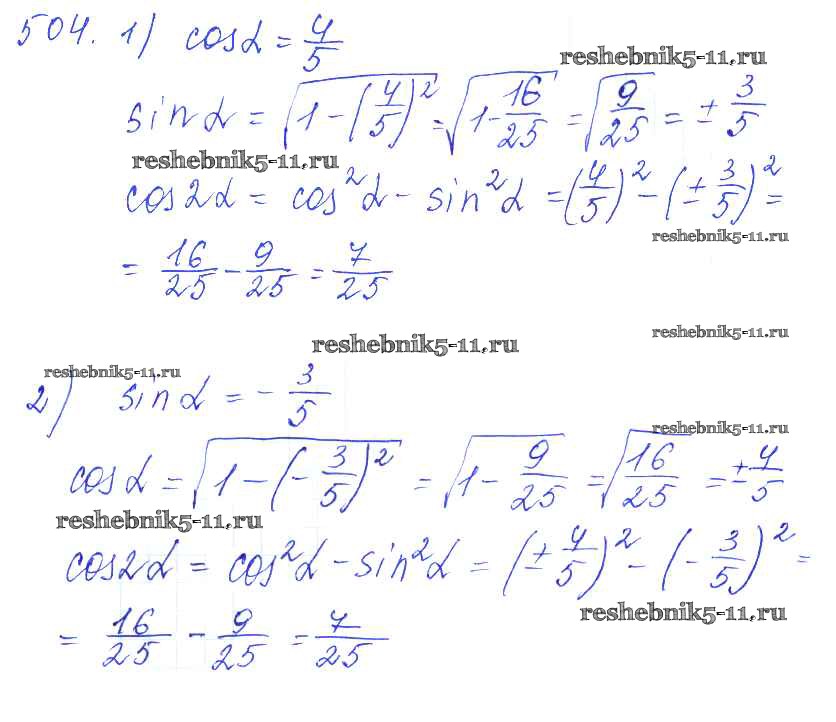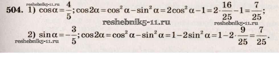 Готовая домашняя работа с ответами по Алгебре за 10, 11 класс Алимов, Ткачева, Колягин, Федорова, Шабунин Учебник Базовый и углубленный уровень Просвещение 2015 ФГОС - Упражнения 504