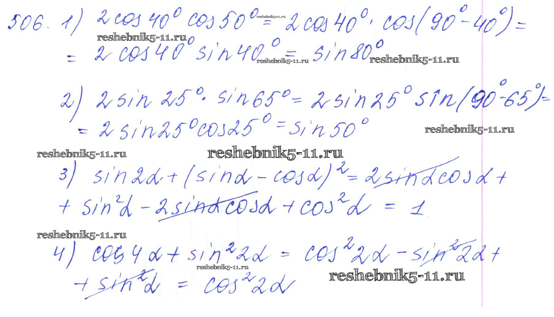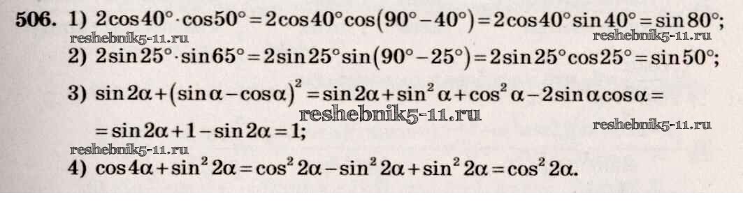 Готовая домашняя работа с ответами по Алгебре за 10, 11 класс Алимов, Ткачева, Колягин, Федорова, Шабунин Учебник Базовый и углубленный уровень Просвещение 2015 ФГОС - Упражнения 506