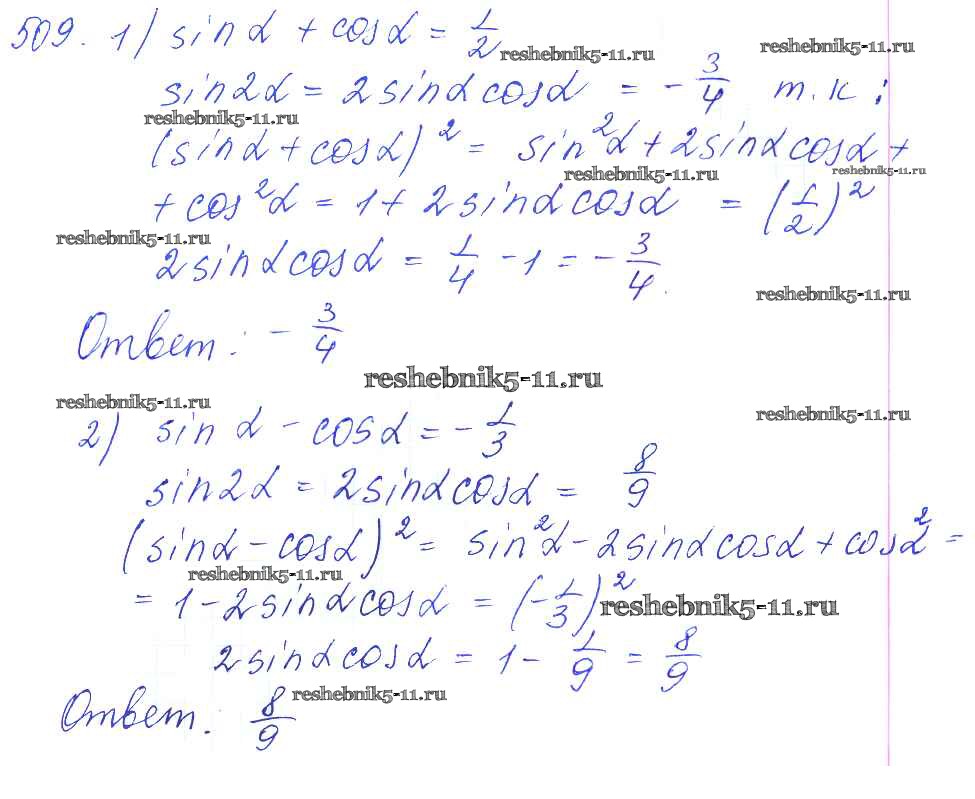 Готовая домашняя работа с ответами по Алгебре за 10, 11 класс Алимов, Ткачева, Колягин, Федорова, Шабунин Учебник Базовый и углубленный уровень Просвещение 2015 ФГОС - Упражнения 509