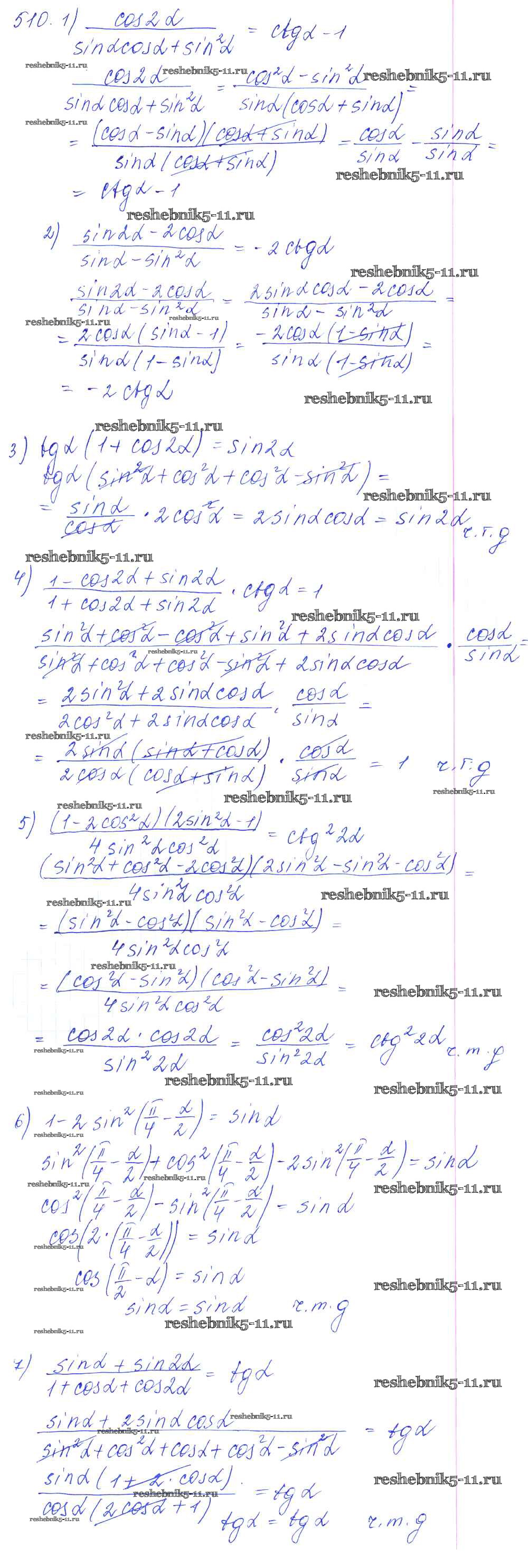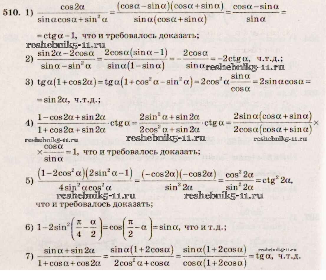 Готовая домашняя работа с ответами по Алгебре за 10, 11 класс Алимов, Ткачева, Колягин, Федорова, Шабунин Учебник Базовый и углубленный уровень Просвещение 2015 ФГОС - Упражнения 510