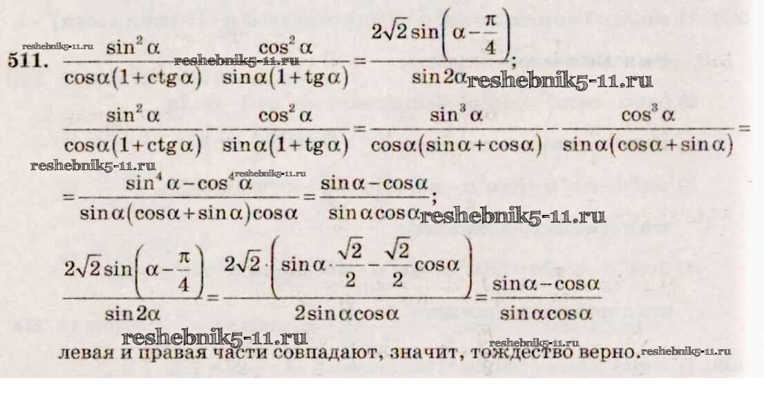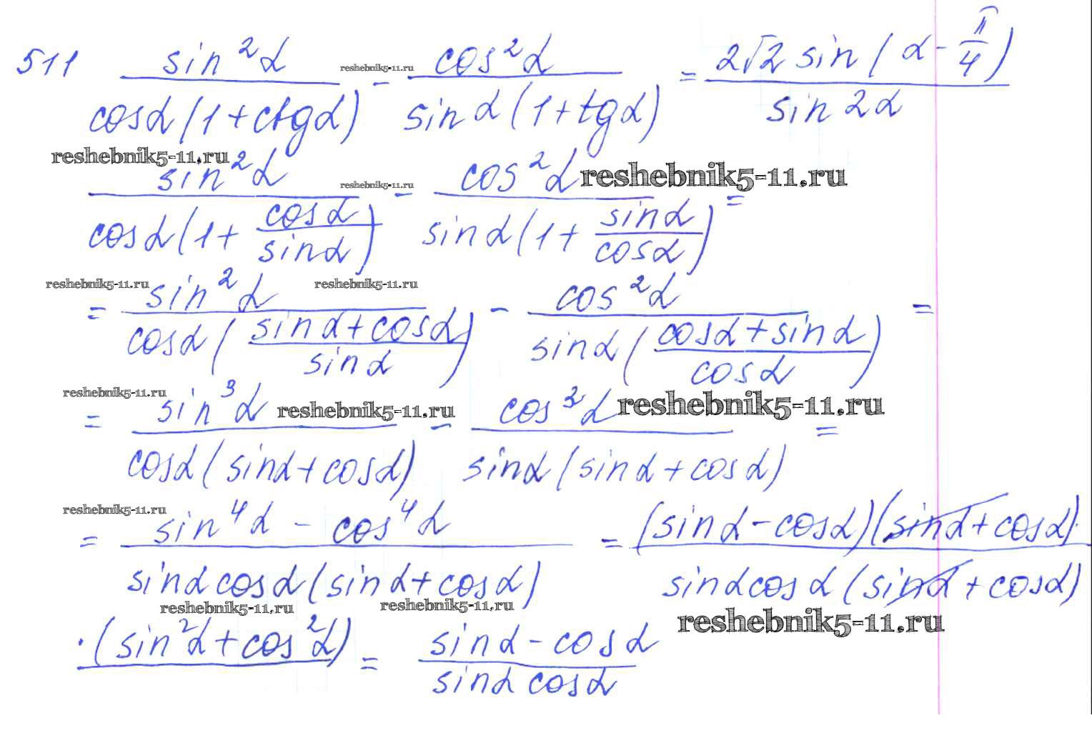 Готовая домашняя работа с ответами по Алгебре за 10, 11 класс Алимов, Ткачева, Колягин, Федорова, Шабунин Учебник Базовый и углубленный уровень Просвещение 2015 ФГОС - Упражнения 511