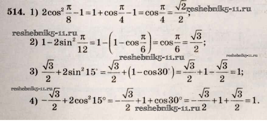Готовая домашняя работа с ответами по Алгебре за 10, 11 класс Алимов, Ткачева, Колягин, Федорова, Шабунин Учебник Базовый и углубленный уровень Просвещение 2015 ФГОС - Упражнения 514