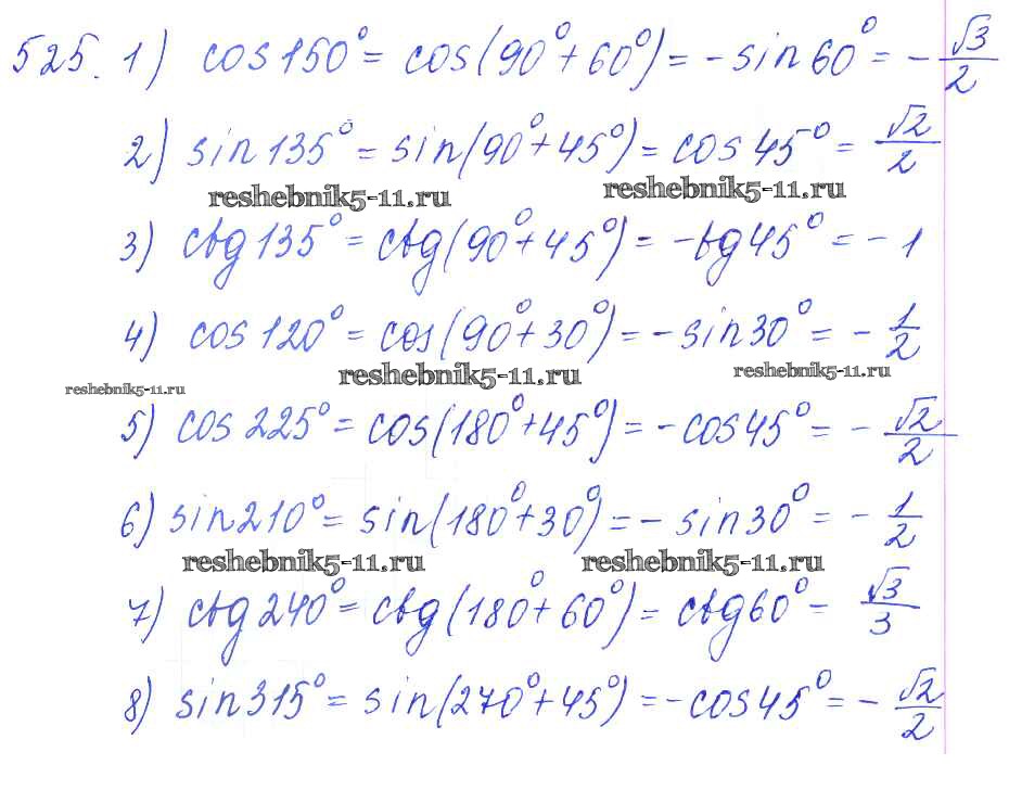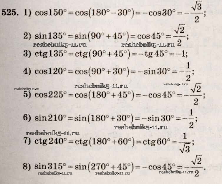 Готовая домашняя работа с ответами по Алгебре за 10, 11 класс Алимов, Ткачева, Колягин, Федорова, Шабунин Учебник Базовый и углубленный уровень Просвещение 2015 ФГОС - Упражнения 525