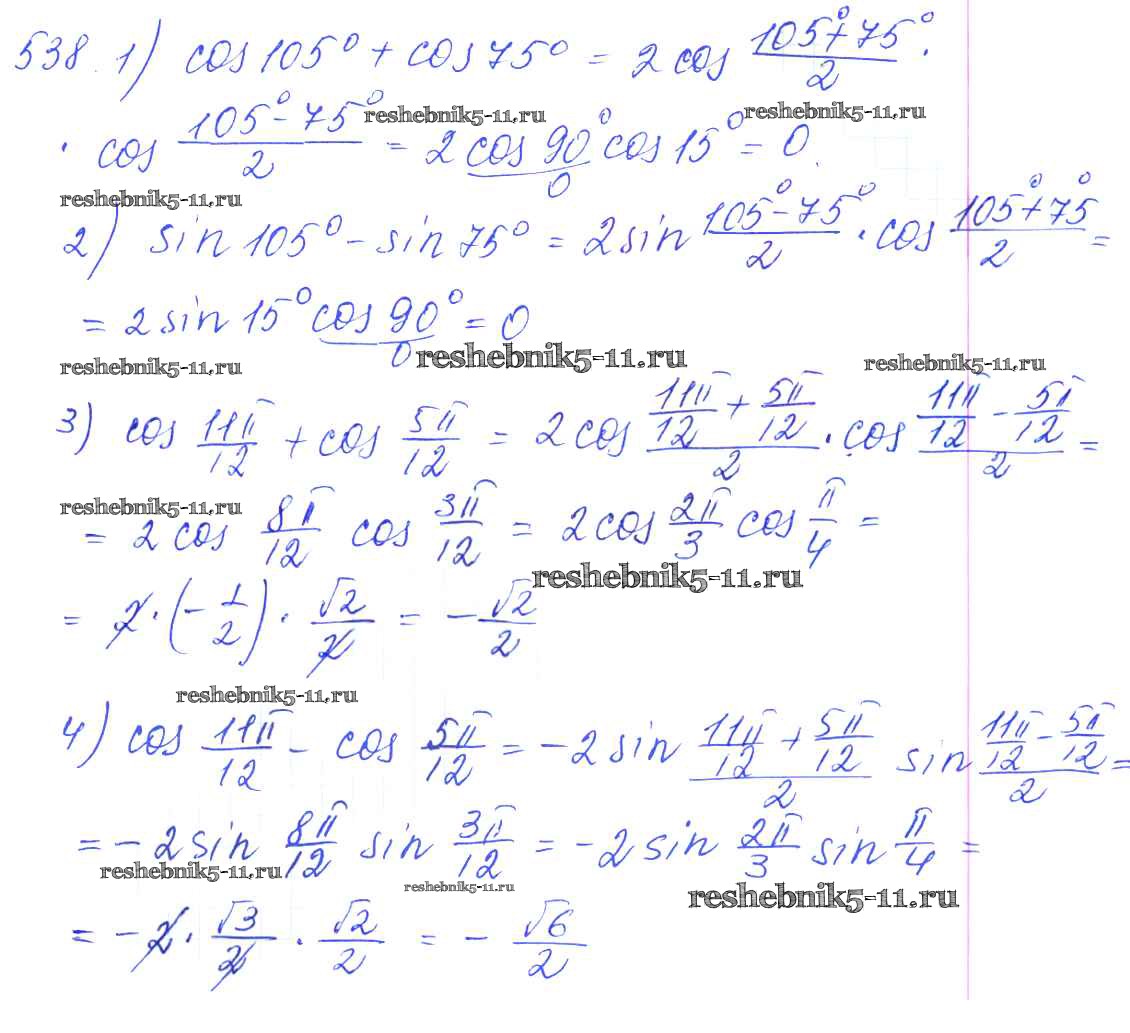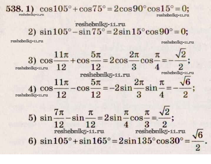Готовая домашняя работа с ответами по Алгебре за 10, 11 класс Алимов, Ткачева, Колягин, Федорова, Шабунин Учебник Базовый и углубленный уровень Просвещение 2015 ФГОС - Упражнения 538