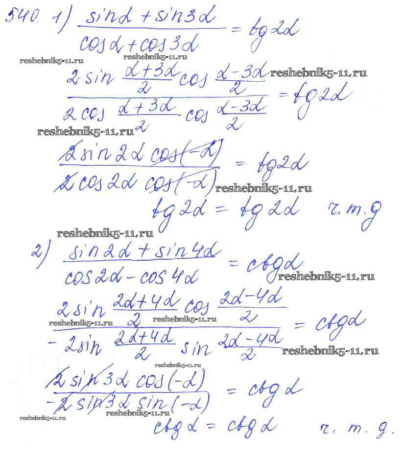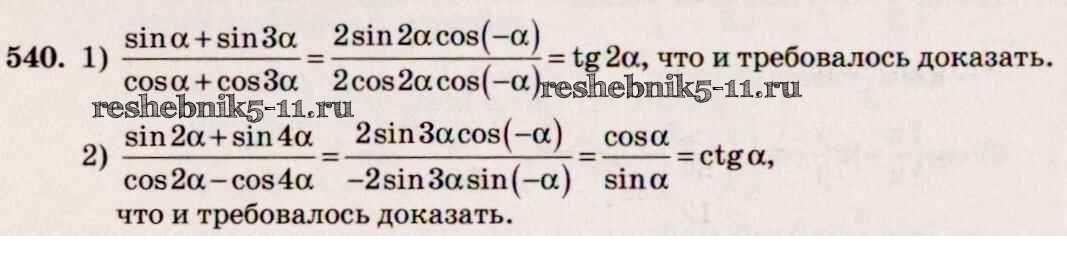 Готовая домашняя работа с ответами по Алгебре за 10, 11 класс Алимов, Ткачева, Колягин, Федорова, Шабунин Учебник Базовый и углубленный уровень Просвещение 2015 ФГОС - Упражнения 540