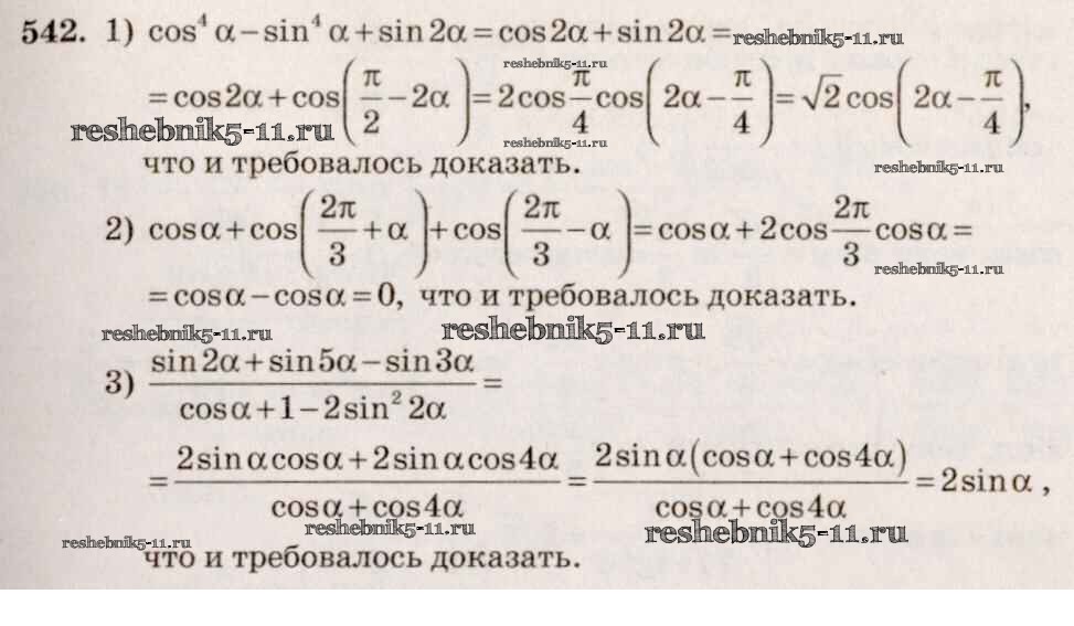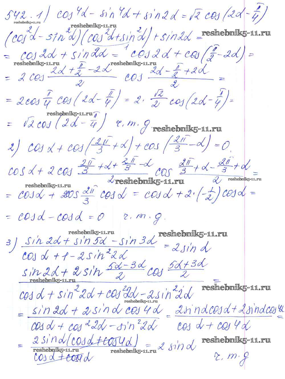 Готовая домашняя работа с ответами по Алгебре за 10, 11 класс Алимов, Ткачева, Колягин, Федорова, Шабунин Учебник Базовый и углубленный уровень Просвещение 2015 ФГОС - Упражнения 542