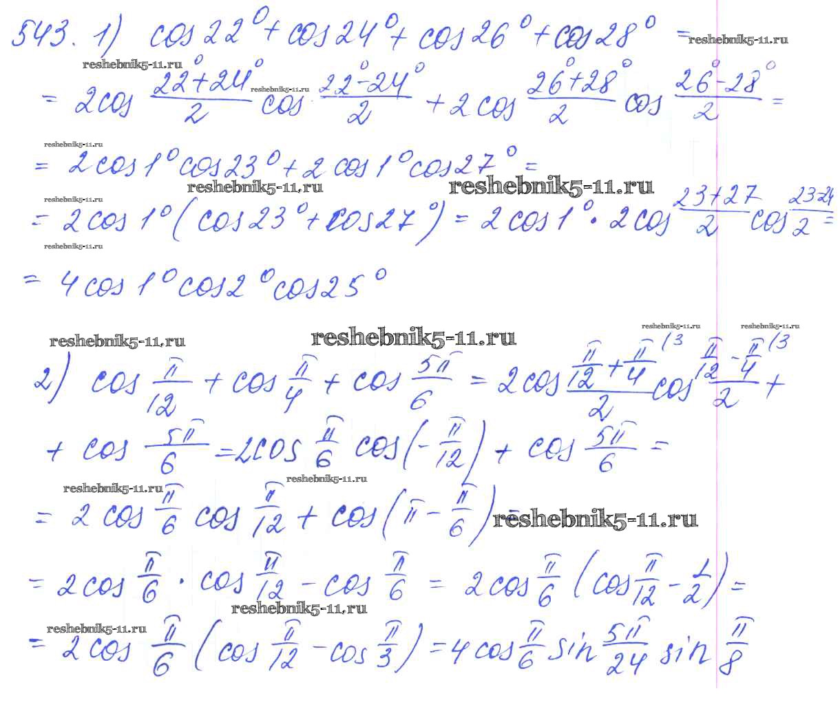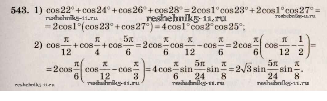 Готовая домашняя работа с ответами по Алгебре за 10, 11 класс Алимов, Ткачева, Колягин, Федорова, Шабунин Учебник Базовый и углубленный уровень Просвещение 2015 ФГОС - Упражнения 543