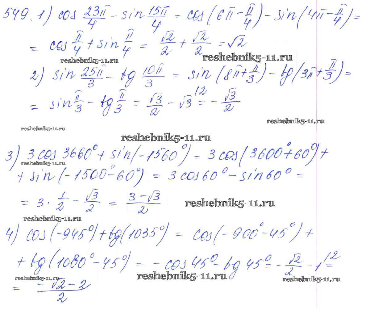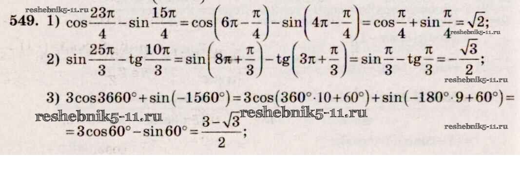 Готовая домашняя работа с ответами по Алгебре за 10, 11 класс Алимов, Ткачева, Колягин, Федорова, Шабунин Учебник Базовый и углубленный уровень Просвещение 2015 ФГОС - Упражнения 549