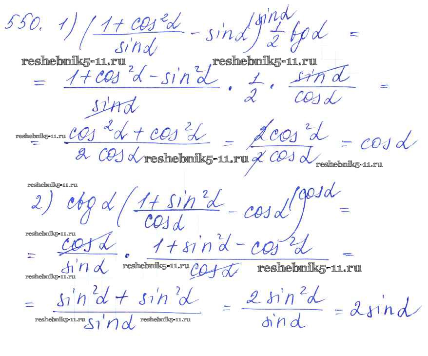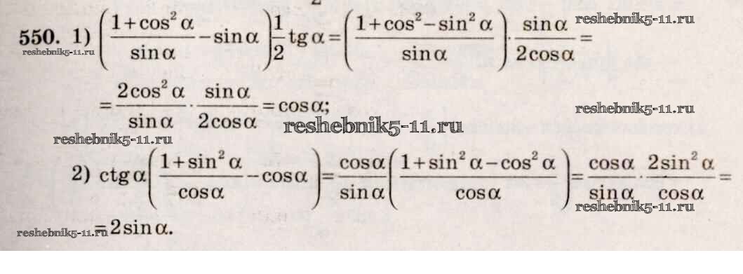 Готовая домашняя работа с ответами по Алгебре за 10, 11 класс Алимов, Ткачева, Колягин, Федорова, Шабунин Учебник Базовый и углубленный уровень Просвещение 2015 ФГОС - Упражнения 550