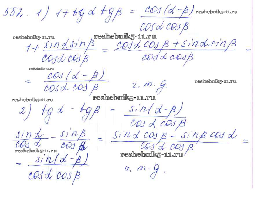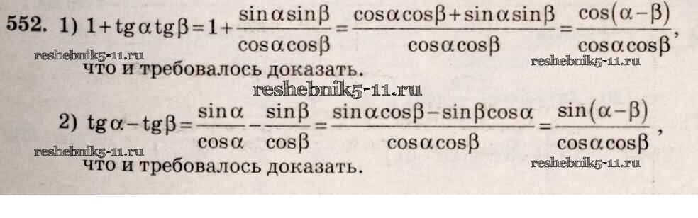 Готовая домашняя работа с ответами по Алгебре за 10, 11 класс Алимов, Ткачева, Колягин, Федорова, Шабунин Учебник Базовый и углубленный уровень Просвещение 2015 ФГОС - Упражнения 552