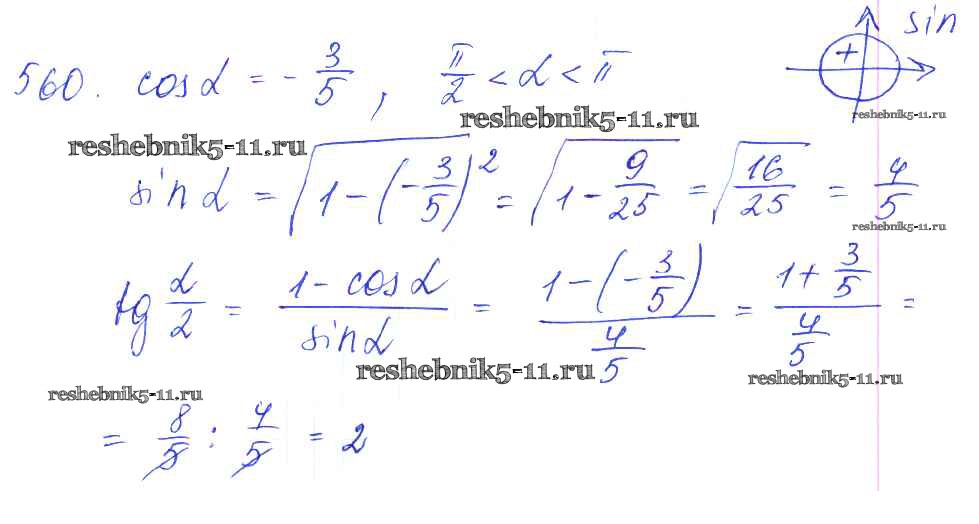 Готовая домашняя работа с ответами по Алгебре за 10, 11 класс Алимов, Ткачева, Колягин, Федорова, Шабунин Учебник Базовый и углубленный уровень Просвещение 2015 ФГОС - Упражнения 560