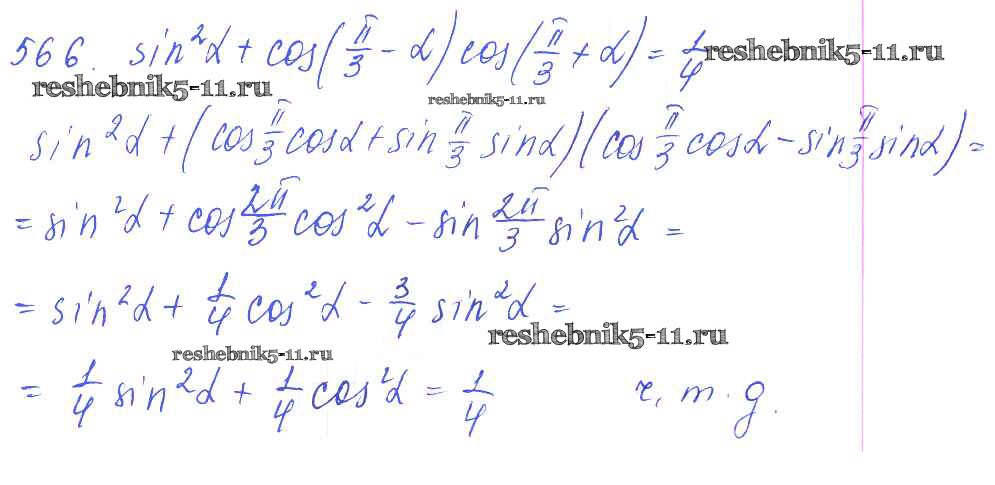 Готовая домашняя работа с ответами по Алгебре за 10, 11 класс Алимов, Ткачева, Колягин, Федорова, Шабунин Учебник Базовый и углубленный уровень Просвещение 2015 ФГОС - Упражнения 566