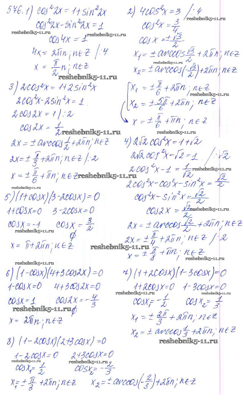 Готовая домашняя работа с ответами по Алгебре за 10, 11 класс Алимов, Ткачева, Колягин, Федорова, Шабунин Учебник Базовый и углубленный уровень Просвещение 2015 ФГОС - Упражнения 576
