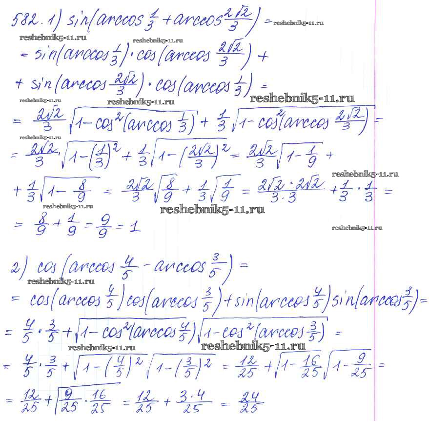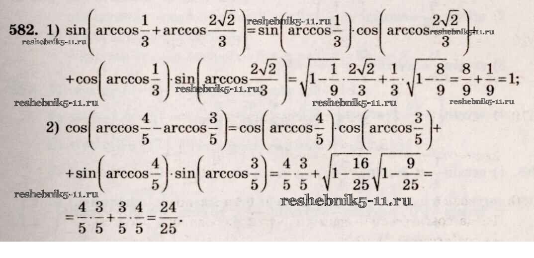 Готовая домашняя работа с ответами по Алгебре за 10, 11 класс Алимов, Ткачева, Колягин, Федорова, Шабунин Учебник Базовый и углубленный уровень Просвещение 2015 ФГОС - Упражнения 582