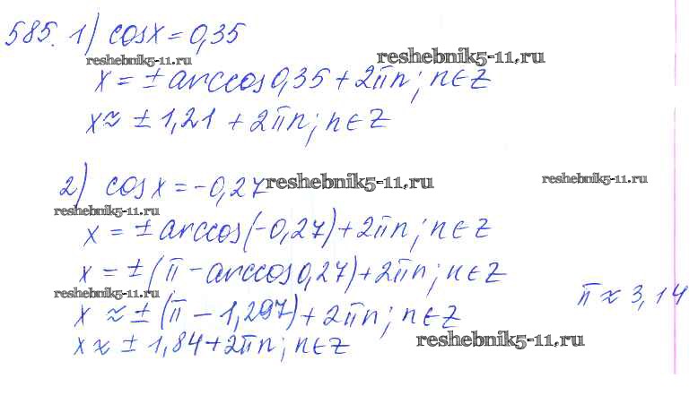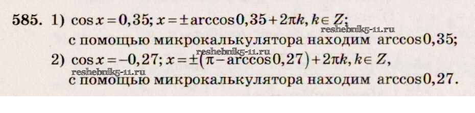 Готовая домашняя работа с ответами по Алгебре за 10, 11 класс Алимов, Ткачева, Колягин, Федорова, Шабунин Учебник Базовый и углубленный уровень Просвещение 2015 ФГОС - Упражнения 585