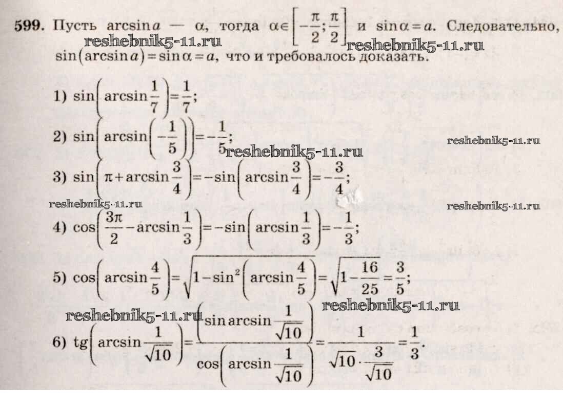 Алгебра за 10-11 класс Алимов Учебник Базовый и углубленный уровень Просвещение упражнение № 599