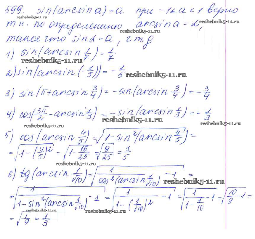 Готовая домашняя работа с ответами по Алгебре за 10, 11 класс Алимов, Ткачева, Колягин, Федорова, Шабунин Учебник Базовый и углубленный уровень Просвещение 2015 ФГОС - Упражнения 599