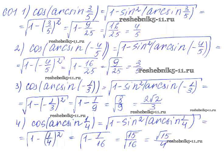 Готовая домашняя работа с ответами по Алгебре за 10, 11 класс Алимов, Ткачева, Колягин, Федорова, Шабунин Учебник Базовый и углубленный уровень Просвещение 2015 ФГОС - Упражнения 601