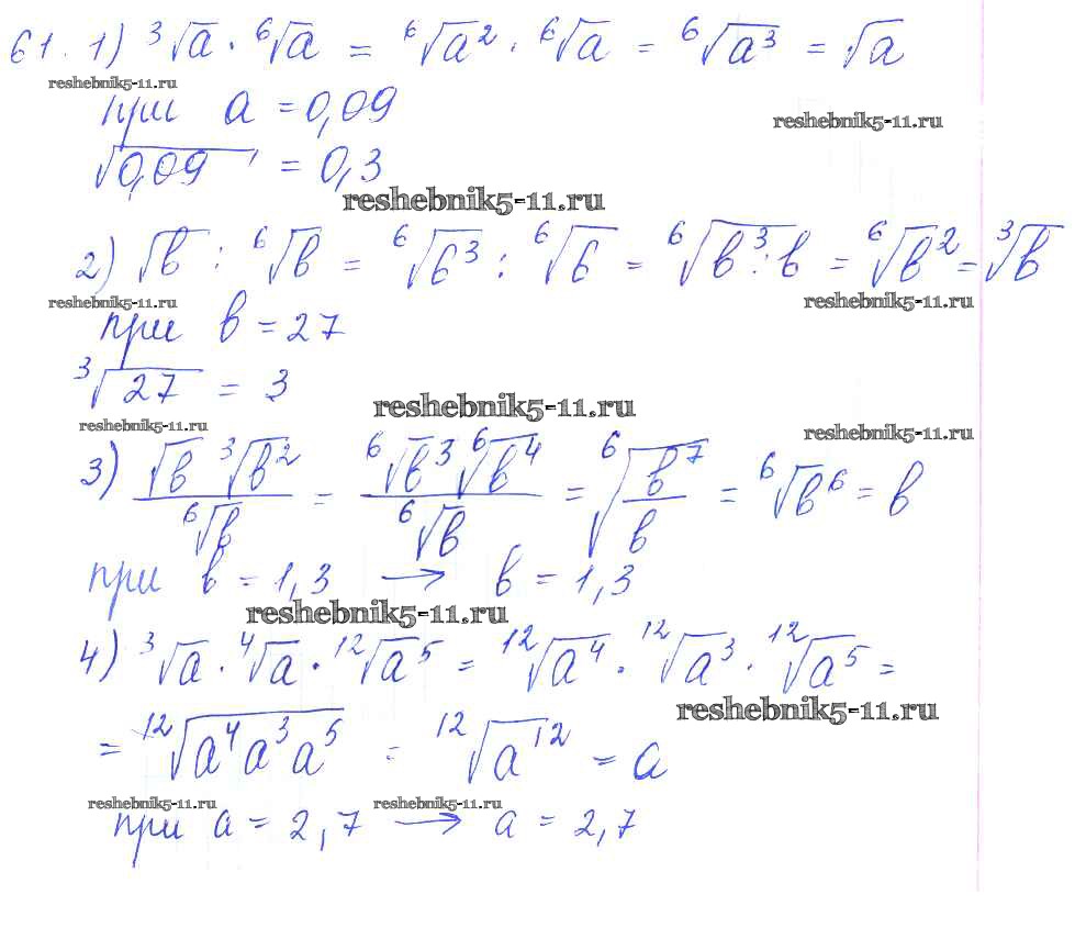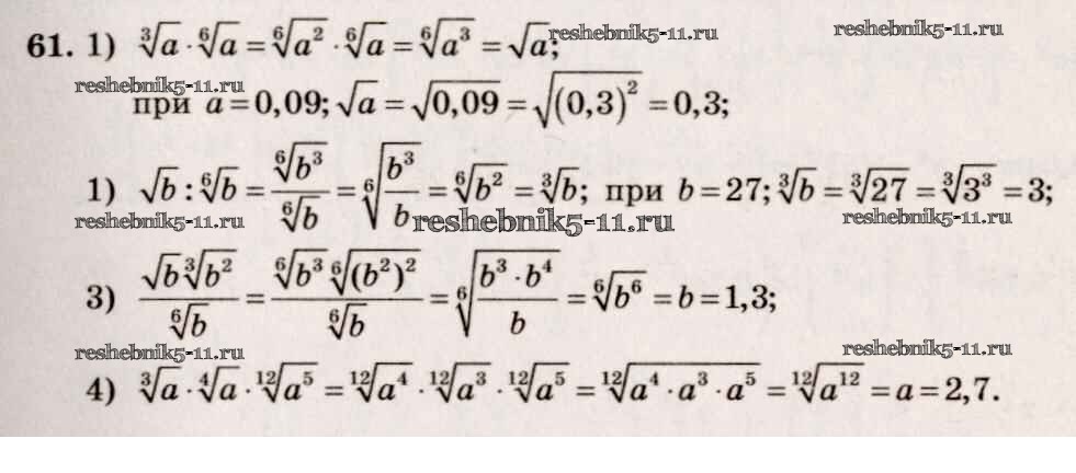 Готовая домашняя работа с ответами по Алгебре за 10, 11 класс Алимов, Ткачева, Колягин, Федорова, Шабунин Учебник Базовый и углубленный уровень Просвещение 2015 ФГОС - Упражнения 61