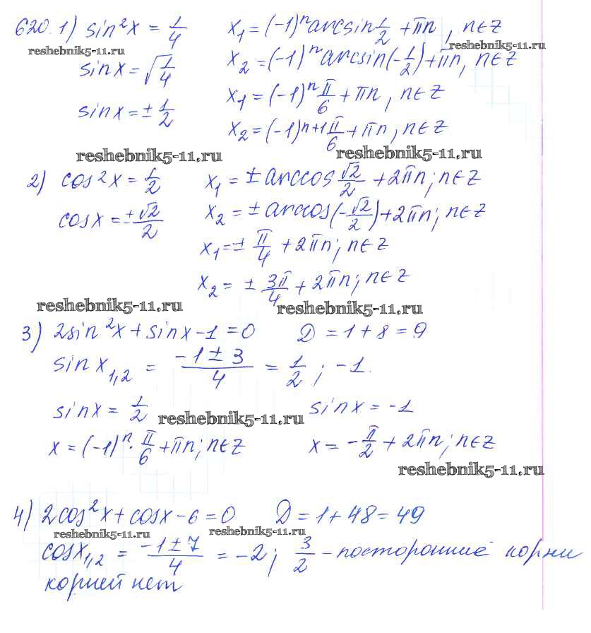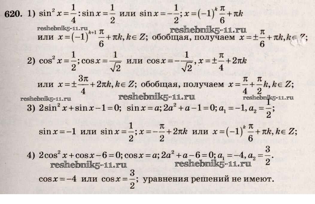 Готовая домашняя работа с ответами по Алгебре за 10, 11 класс Алимов, Ткачева, Колягин, Федорова, Шабунин Учебник Базовый и углубленный уровень Просвещение 2015 ФГОС - Упражнения 620