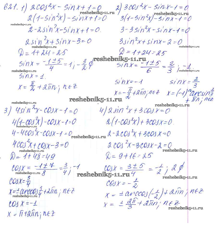 Готовая домашняя работа с ответами по Алгебре за 10, 11 класс Алимов, Ткачева, Колягин, Федорова, Шабунин Учебник Базовый и углубленный уровень Просвещение 2015 ФГОС - Упражнения 621