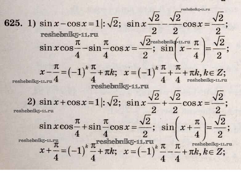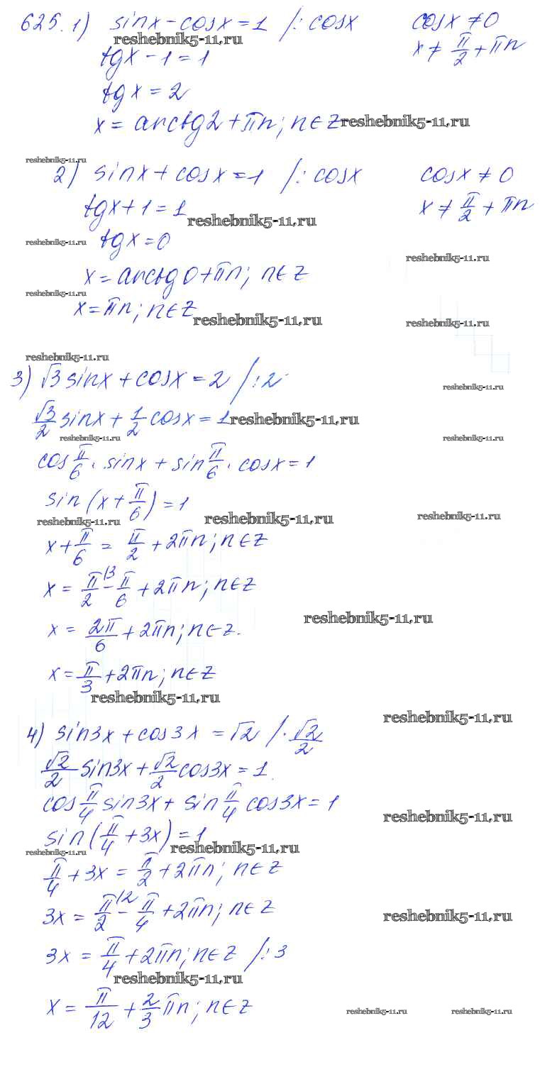 Готовая домашняя работа с ответами по Алгебре за 10, 11 класс Алимов, Ткачева, Колягин, Федорова, Шабунин Учебник Базовый и углубленный уровень Просвещение 2015 ФГОС - Упражнения 625
