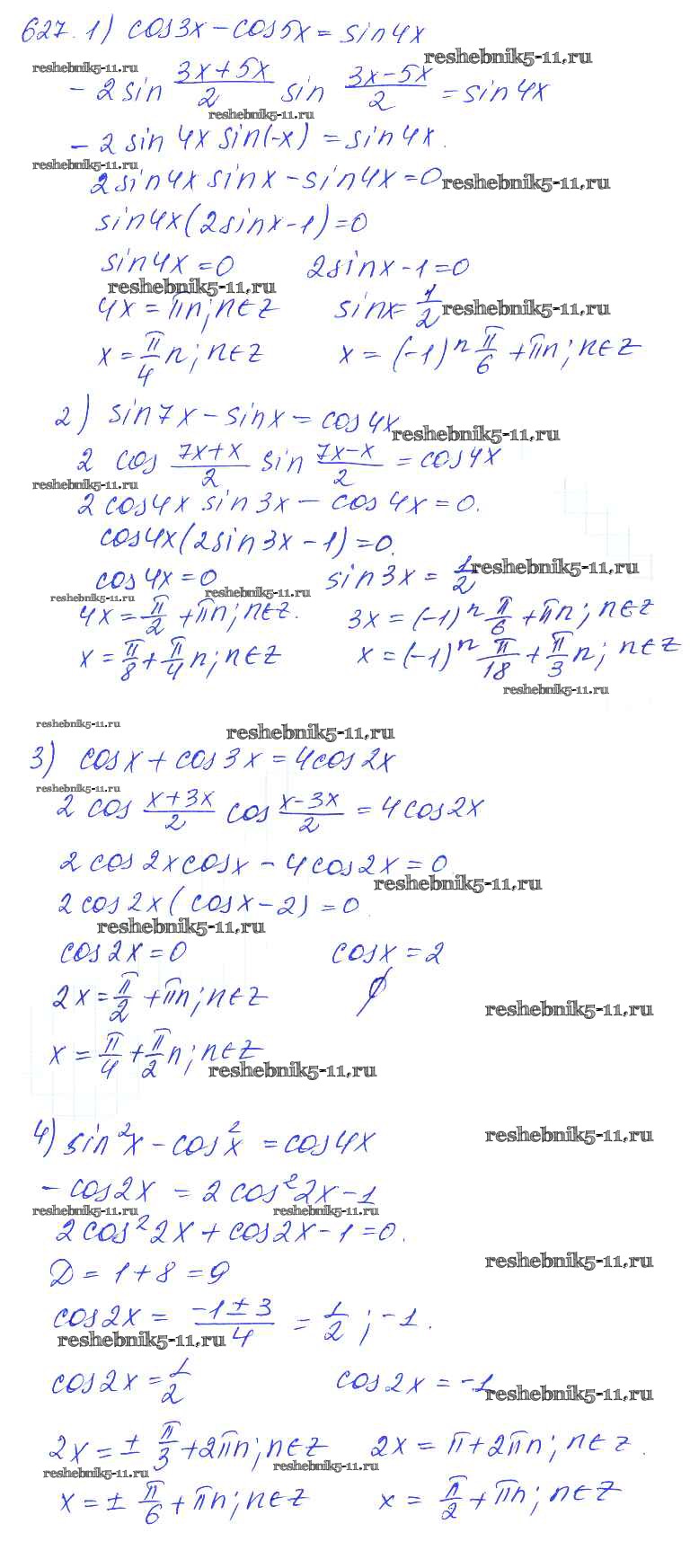 Готовая домашняя работа с ответами по Алгебре за 10, 11 класс Алимов, Ткачева, Колягин, Федорова, Шабунин Учебник Базовый и углубленный уровень Просвещение 2015 ФГОС - Упражнения 627