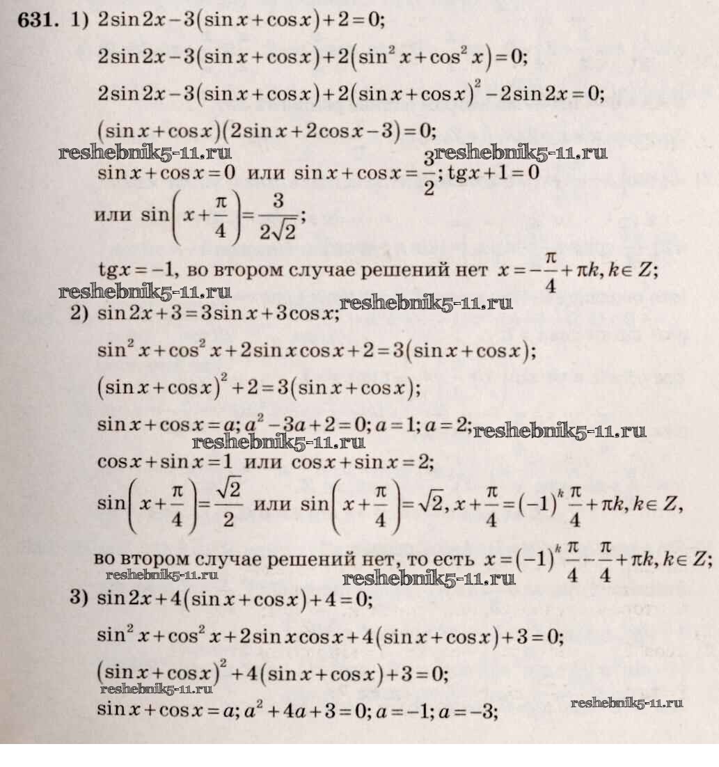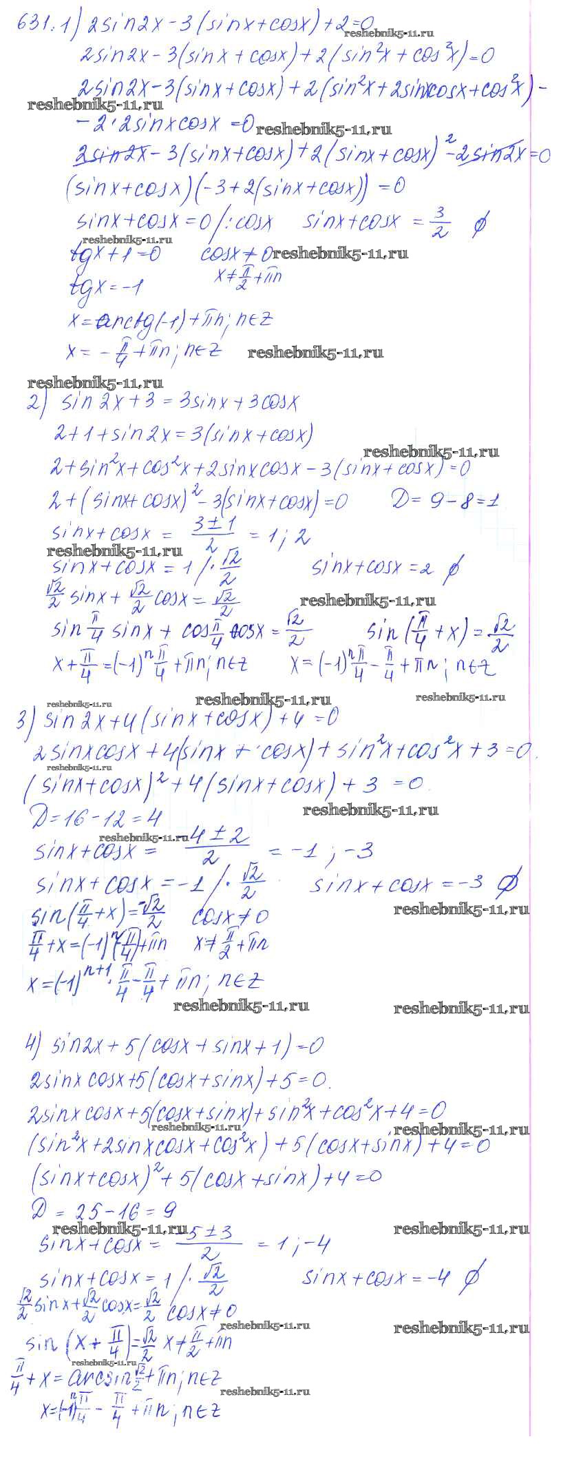 Готовая домашняя работа с ответами по Алгебре за 10, 11 класс Алимов, Ткачева, Колягин, Федорова, Шабунин Учебник Базовый и углубленный уровень Просвещение 2015 ФГОС - Упражнения 631