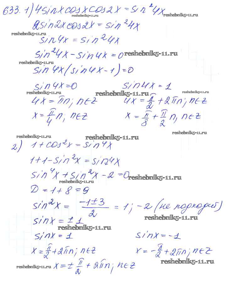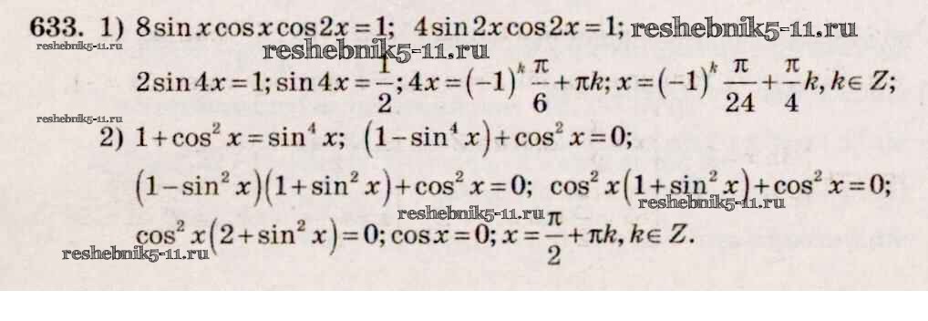 Готовая домашняя работа с ответами по Алгебре за 10, 11 класс Алимов, Ткачева, Колягин, Федорова, Шабунин Учебник Базовый и углубленный уровень Просвещение 2015 ФГОС - Упражнения 633