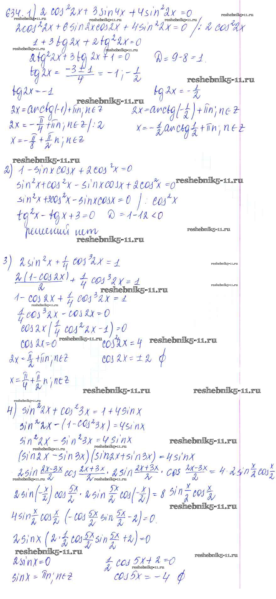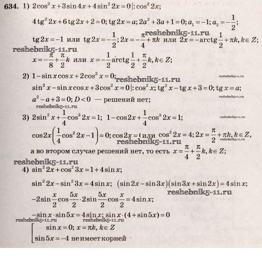 Готовая домашняя работа с ответами по Алгебре за 10, 11 класс Алимов, Ткачева, Колягин, Федорова, Шабунин Учебник Базовый и углубленный уровень Просвещение 2015 ФГОС - Упражнения 634