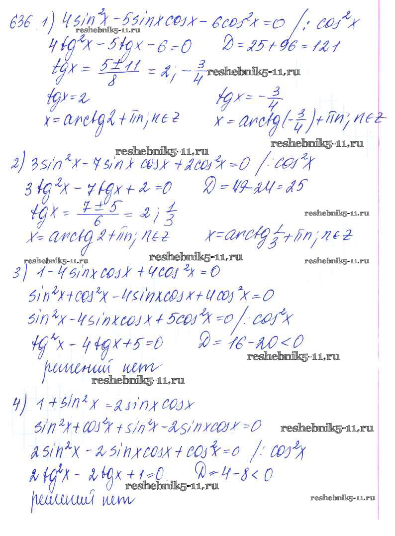 Готовая домашняя работа с ответами по Алгебре за 10, 11 класс Алимов, Ткачева, Колягин, Федорова, Шабунин Учебник Базовый и углубленный уровень Просвещение 2015 ФГОС - Упражнения 636